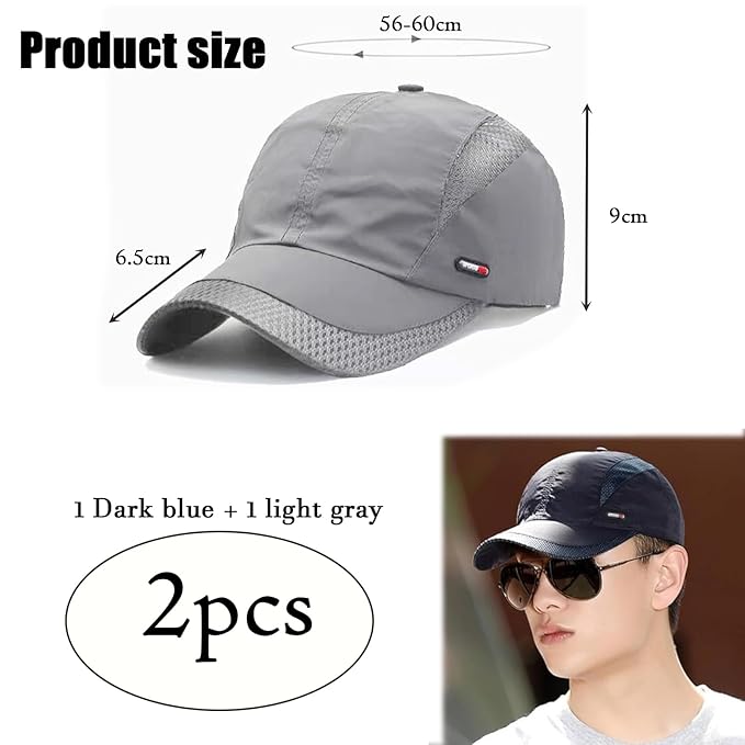 2Pcs Sun Protection Cap for Men| Sun Hats for Men| Adjustable Sport Caps Summer Cap for Golf Tennis Cricket Cycling Running Gym Baseball Caps