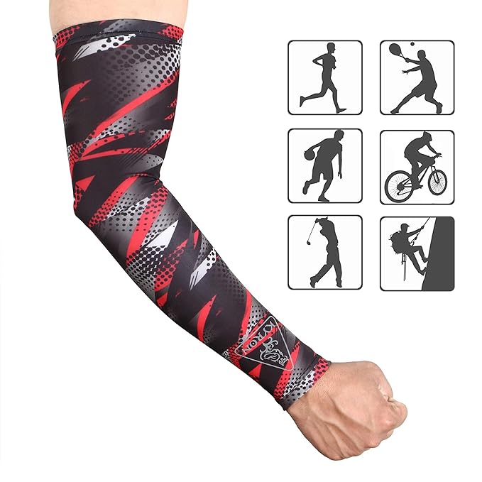 - STYLISH & DURABLE WITH A FASHION EDGE: Apart from its functional benefits, our arm sleeves for men sports adds a stylish edge to your attire. The contemporary design and range of colors ensure you look good while staying active. Durability is at the core of its design; it’s built to endure the rigors of daily use, making it a dependable accessory to support your active lifestyle for the long haul. Whether you’re wearing it for a run or as a fashion statement.