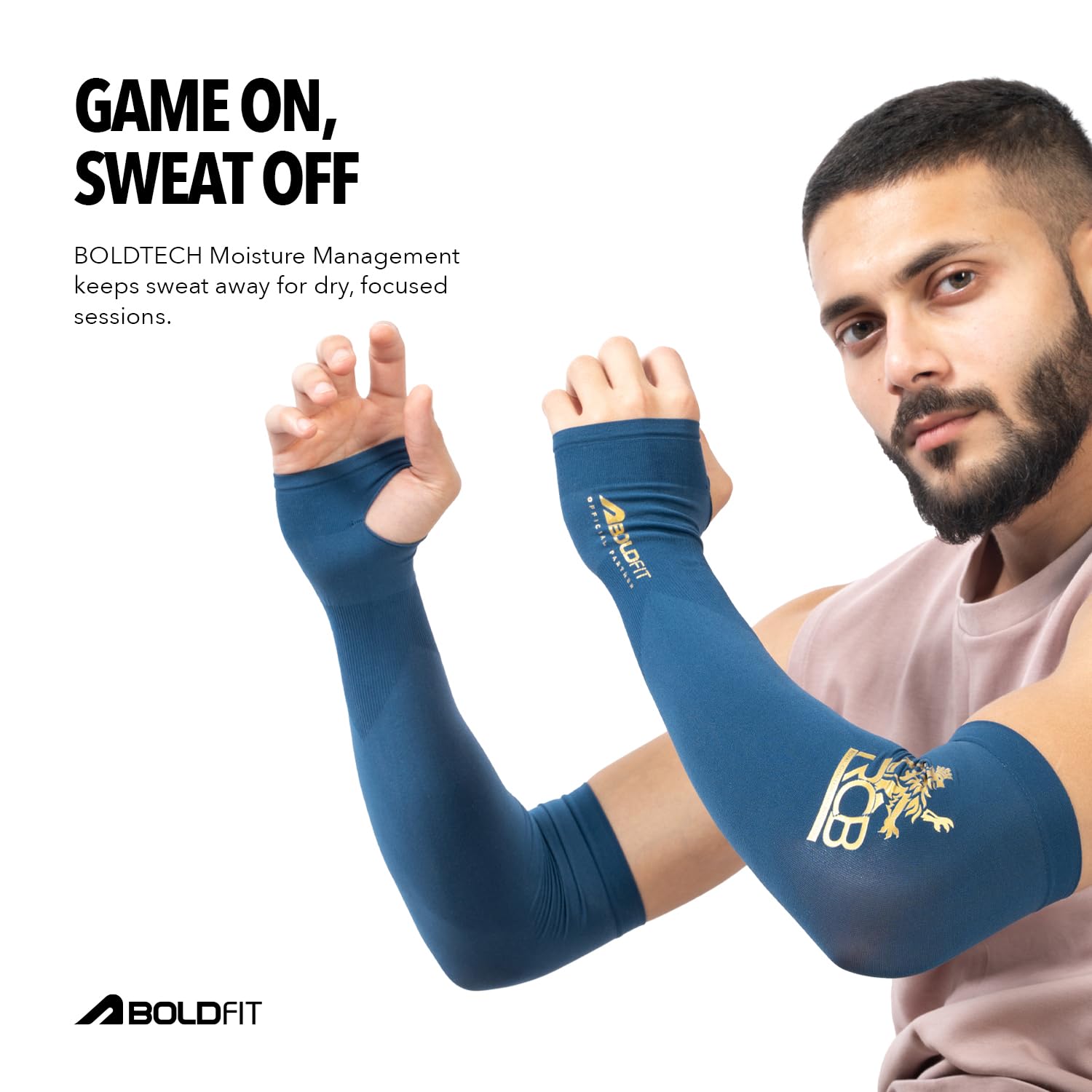 Boldfit Arm Sleeves for Men & Women UV Protection Hand Sleeves With Thumb for Boys & Girls Sun Protection Sleeves for Men Arm Sleeves for Women for Running | Hand Cover for Bike Riding Nylon – Colour Blue