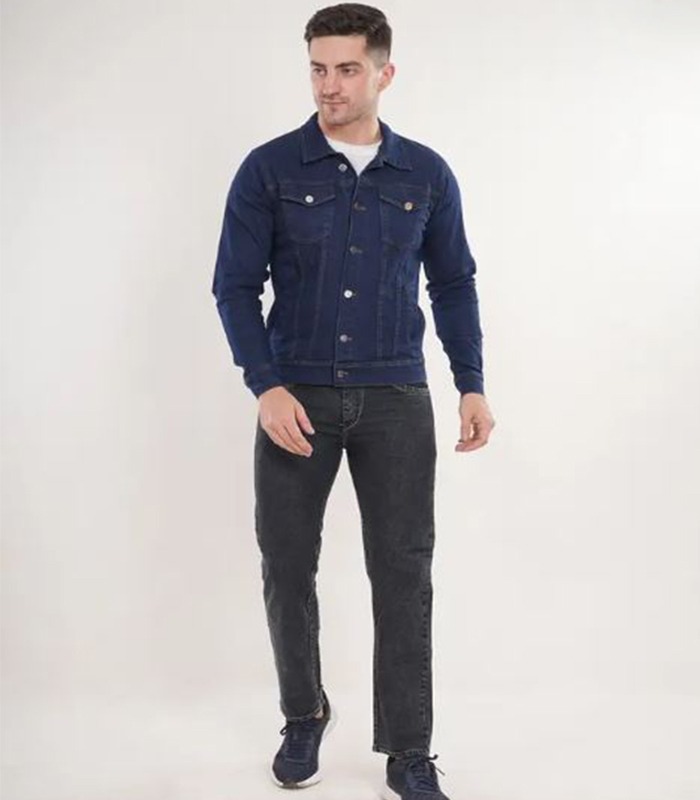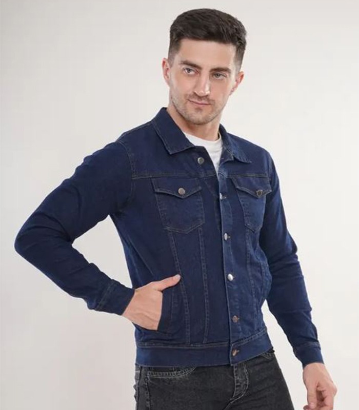 Full Sleeve Solid Men Denim Jacket – Dark Blue