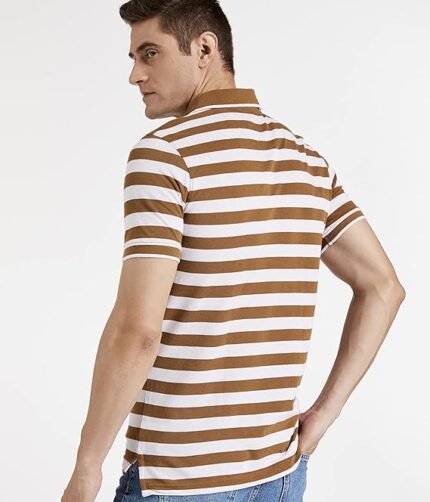 Men’s Cotton Rich Striped Polo T Shirt | Collar Tshirts | Half Sleeves – Regular Fit – Colour: Burnt Green and White