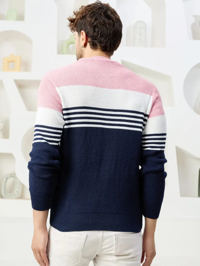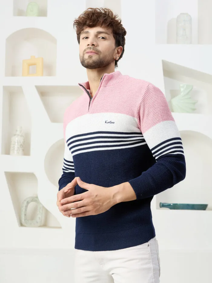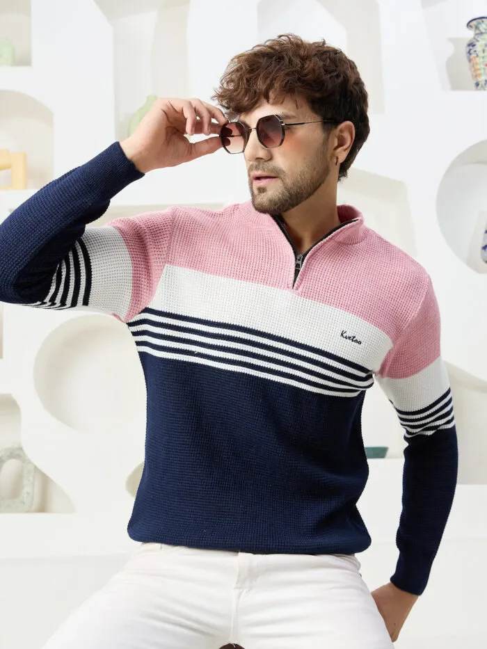 Men Collared Neck Sweater Color Blue | pink & white