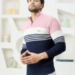Be the first to review “Men Collared Neck Sweater Color Blue | pink & white”