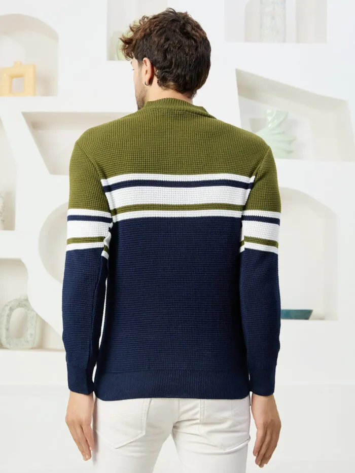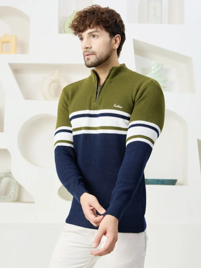 Men Collared Neck Sweater Color Olive navy
