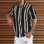 Men Goa Printed Lycra Striped Stylish Men’s Slim Fit Cut Away Collar Casual Shirt – Colour Black