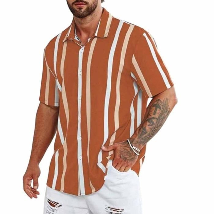 Men Goa Printed Lycra Striped Stylish Men’s Slim Fit Cut Away Collar Casual Shirt – Colour Orange