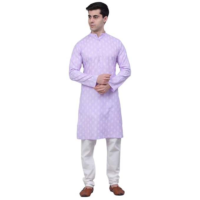 Men’s Cotton Floral printed kurta Pyjama Set Colour Purple Colour
