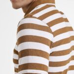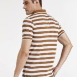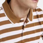Men’s Cotton Rich Striped Polo T Shirt | Collar Tshirts | Half Sleeves – Regular Fit – Colour: Burnt Green and White
