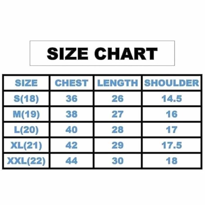 - Chest Size: 12-18 to 18-24 Months – 22″; 1 to 3 Years – 24″; 3 to 4 Years – 26″; 4 to 6 Years – 28″; 6 to 8 Years – 30″; 8 to 10 Years – 32″; 10 to 12 Years – 34″; XS-34″; 13 to 16 Years- 36″; S-36″; M-38″; L-40″; XL-42″; XXL-44″